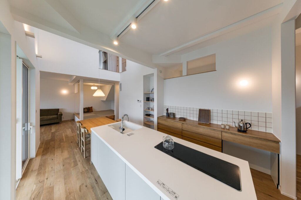 海を切り取る大開口と、光溢れる吹き抜けで365日、家じゅうが春のような陽だまりに包まれます。 どこにいても家族の気配を感じられる開放的なLDKは、心まで安らぐ心地よさです。